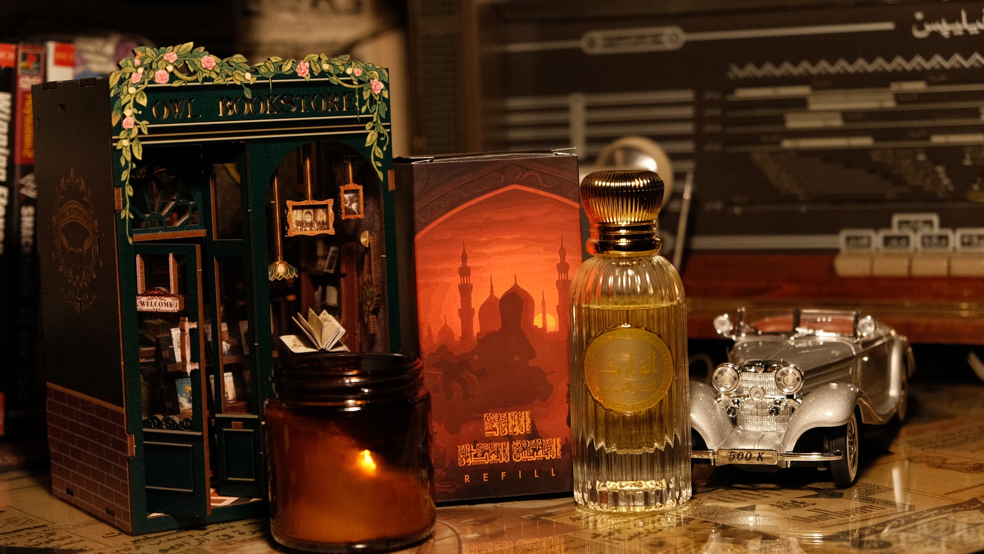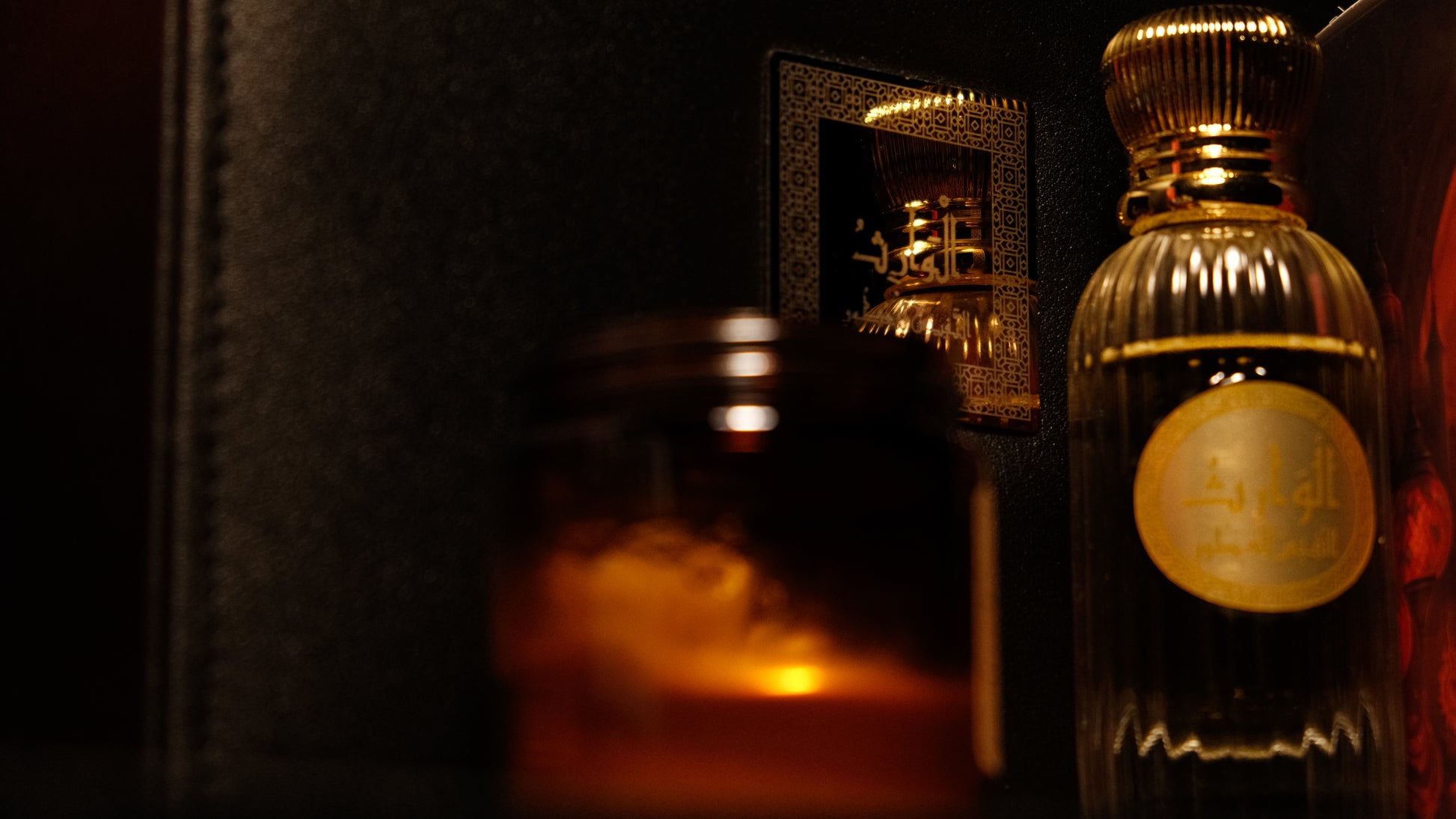 Incense rises to meet it, creating a celestial blend that fills the space with an aura of reverence and grace as if the fragrance itself were a prayer lifted from a far desert.